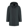 Die Außenjacke besteht aus einem atmungsaktiven Polyestergewebe mit einer Wassersäule von 10.000 mm und vollständig versiegelten Nähten. Das macht die Jacke wasser- und winddicht, während sie dank strategisch platzierter Metallösen gut belüftet bleibt. Der 2-Wege-Reißverschluss sorgt für zusätzliche Flexibilität beim Öffnen und Schließen der Jacke. Der Reißverschluss ist mit einer Leiste versehen, die sich mit Klettverschluss und Druckknöpfen schließen lässt, um maximalen Schutz vor den Elementen zu bieten. Die abnehmbare Kapuze ist mit Kordelzügen verstellbar und mit dem gleichen Stoff wie die Außenjacke gefüttert, was für einen eleganten, modernen Look sorgt.